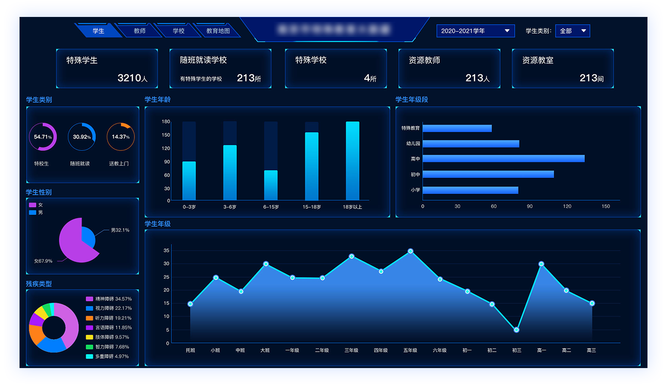 學生(shēng)按照(zhào)學年(nián)分(fēn)類統計(jì)年(nián)齡、殘障類别、殘疾證¶明(míng)類型、殘疾程度、就(jiù)讀(dú)方式等數(shù)據,學校(xiào)按照(zhào)學校(xiào)類型、所屬街(£jiē)道(dào)等統計(jì)。結合各類數(shù)據的(de)可(kě)視(shì)化(huà)大(dà)屏展示,♠形成市(shì)/區(qū)/校(xiào)三級數(shù)據看(kàn)闆(指導中心,資源中心的(de)地(dì)圖分(fēn)布展示、學生(shēng)信息圖表展示、全區(qū)資源中心教室資源圖表展示、教師(shī)資源圖表展示、研訓活動圖表展示等),按照(zhào)區(qū)域地(dì)圖形成特教大∏(dà)數(shù)據,展示區(qū)域的(de)學校(xiào)、街(jiē)道(dào)、學生(shēng)分(fēn)布。
